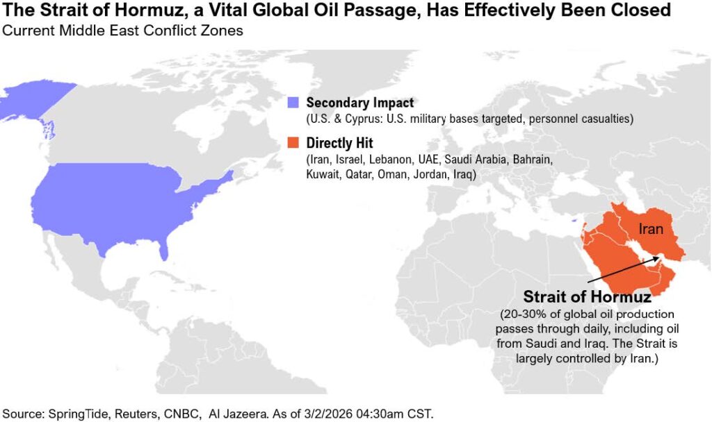 This market update examines the recent escalation in the Middle East following a joint U.S.–Israeli strike on Iran and the resulting market reaction. It reviews historical parallels, explores potential economic implications of a disruption in the Strait of Hormuz, and provides perspective on how investors can contextualize geopolitical risk within a long-term investment framework.